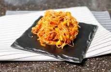 삶자마자 체에 건져 가볍게 한 번만 헹군 뒤 물기를 충분히 빼줍니다.